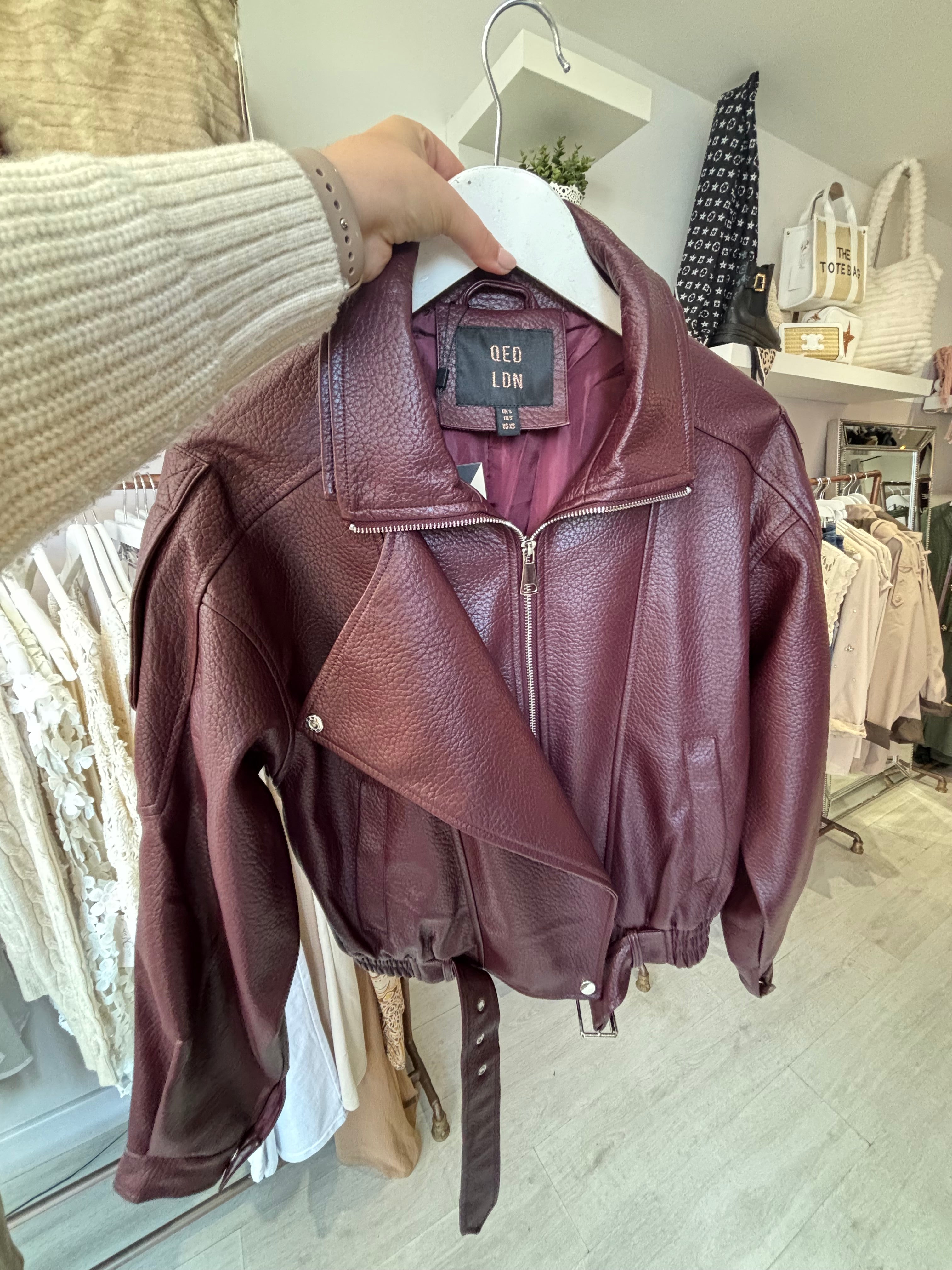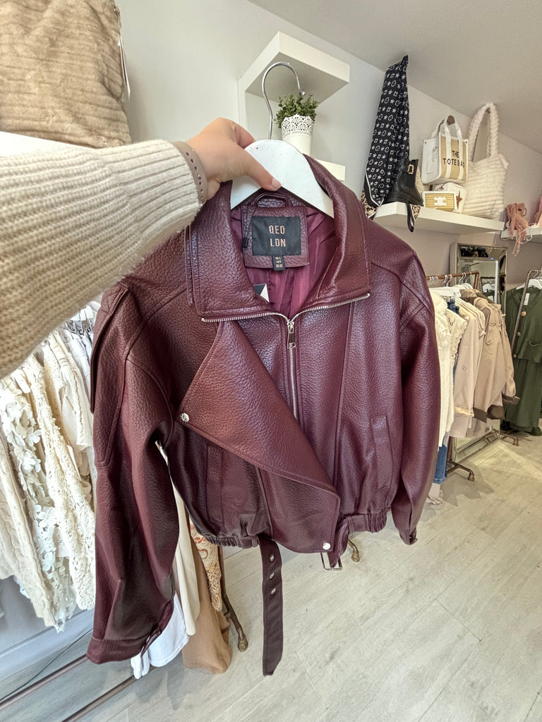 Plum matte pleather Jacket - M is backordered and will ship as soon as it is back in stock.
