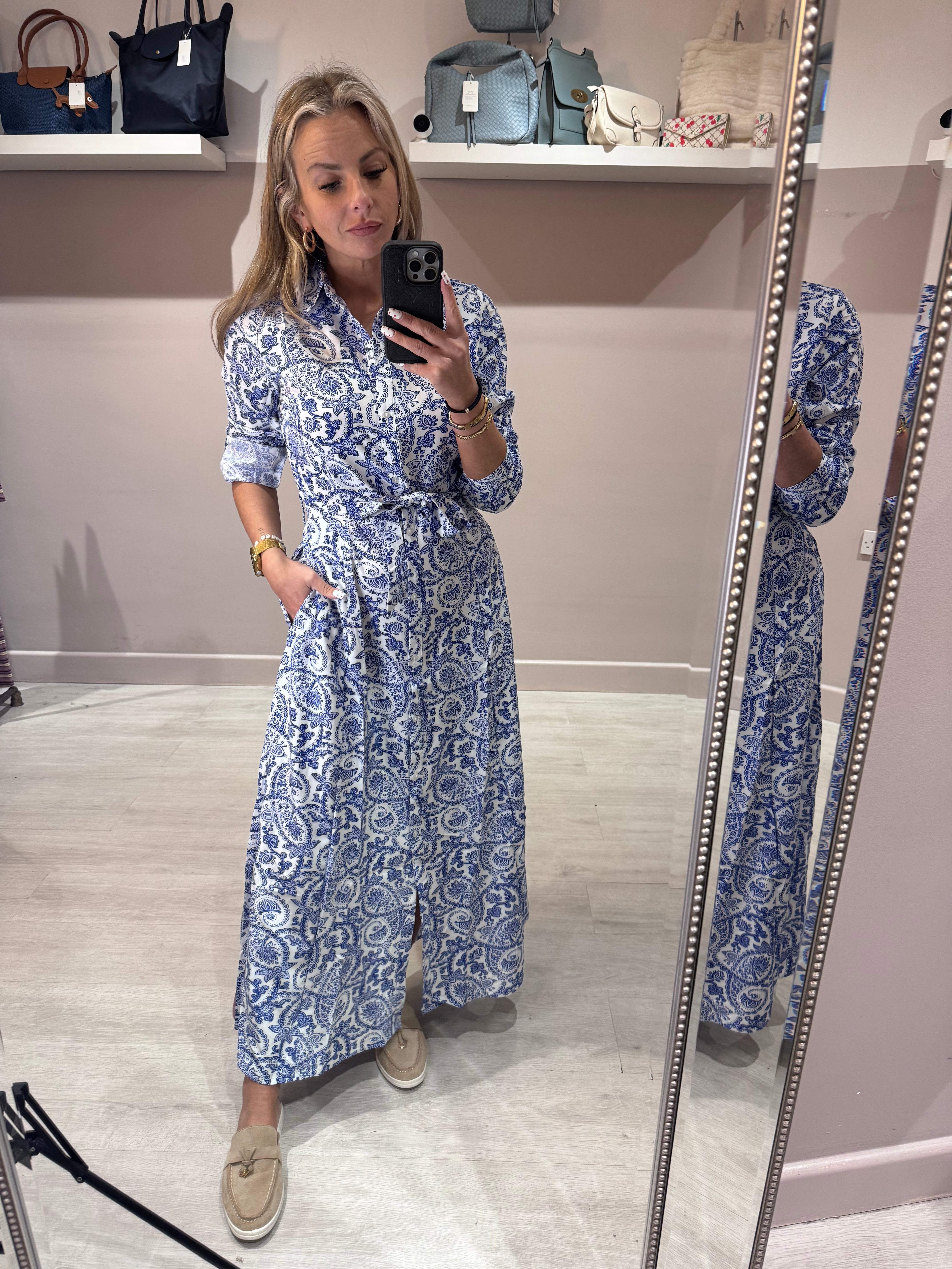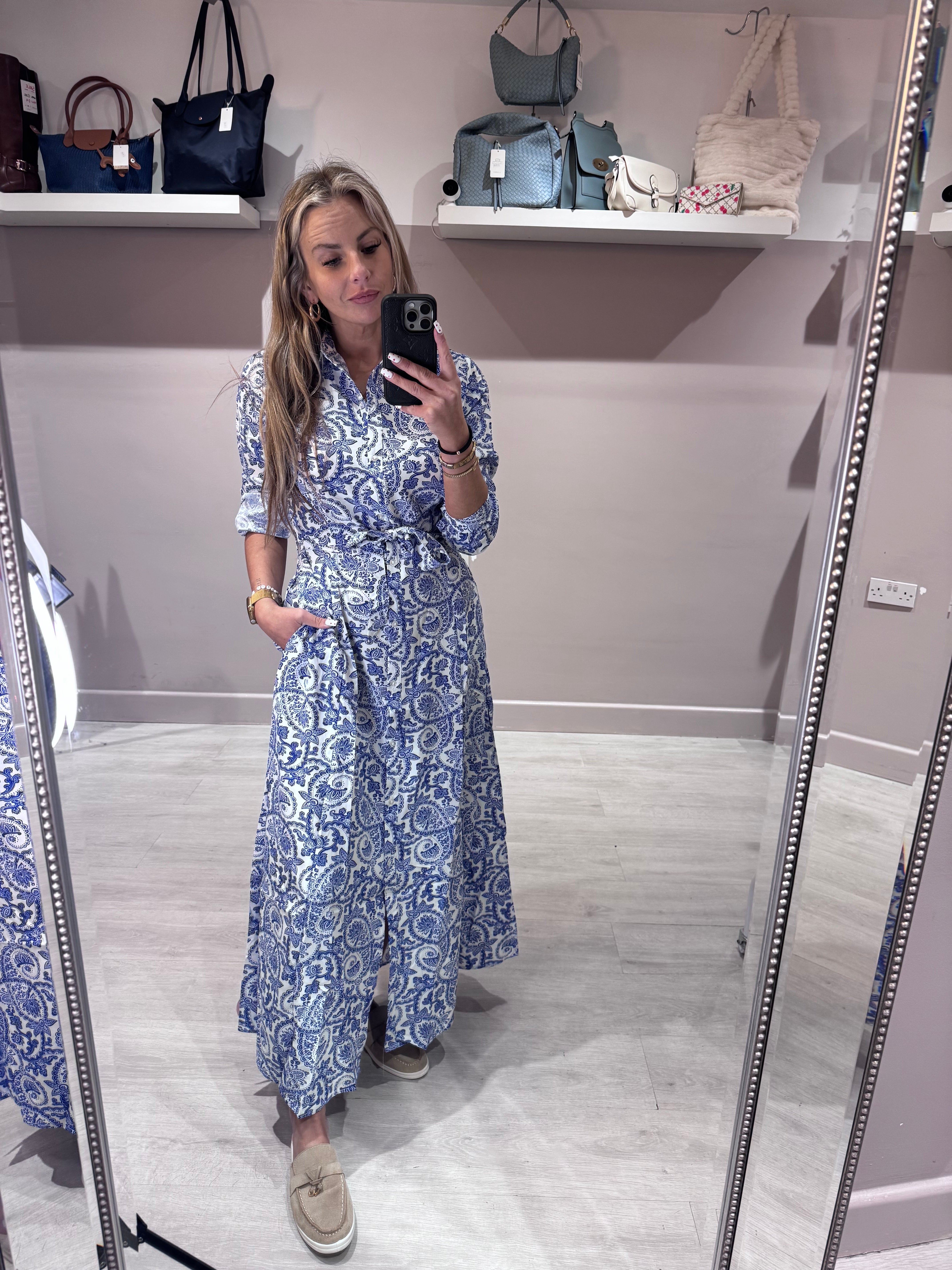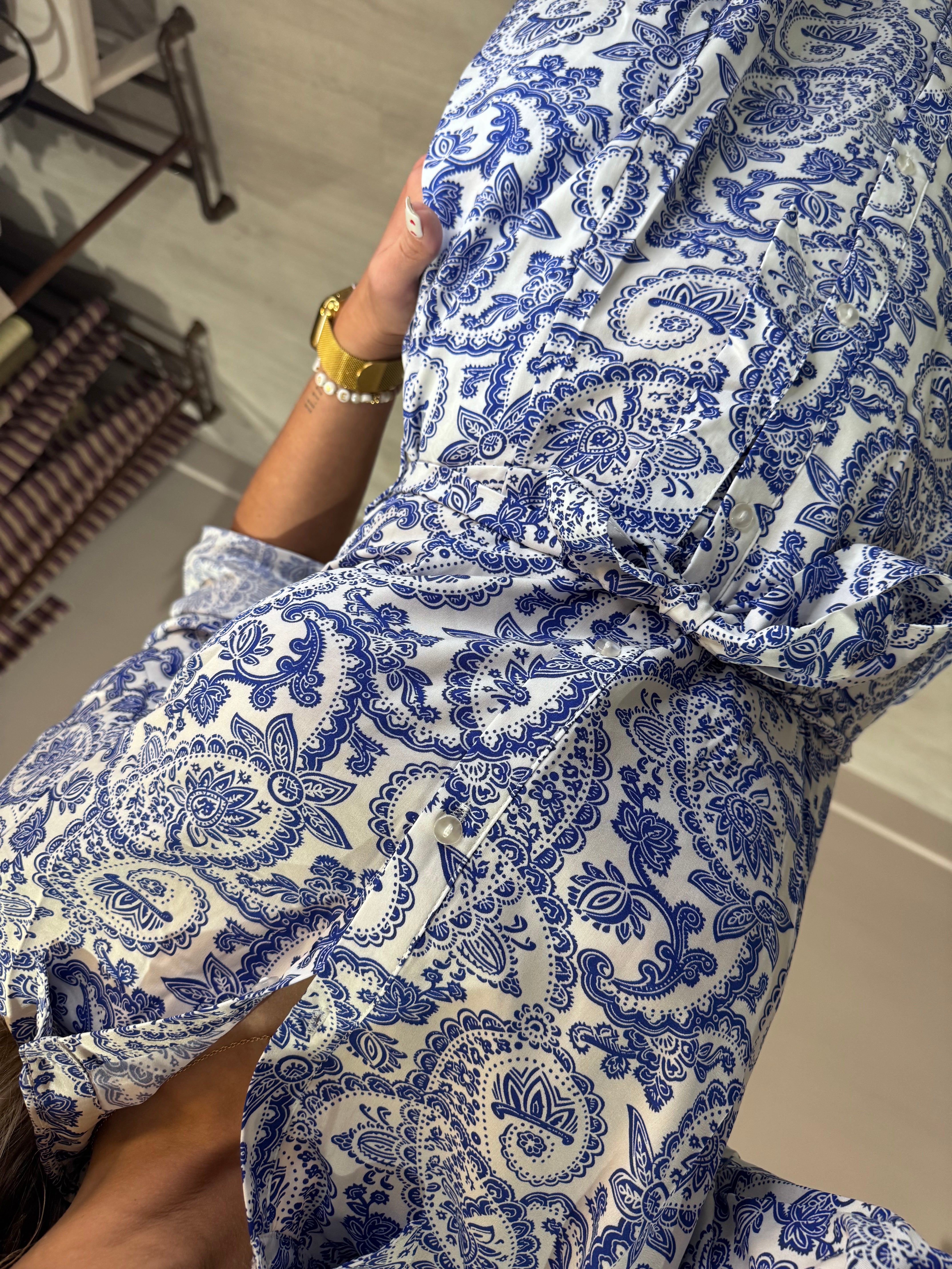Porcelain Floral print midi length shirt dress