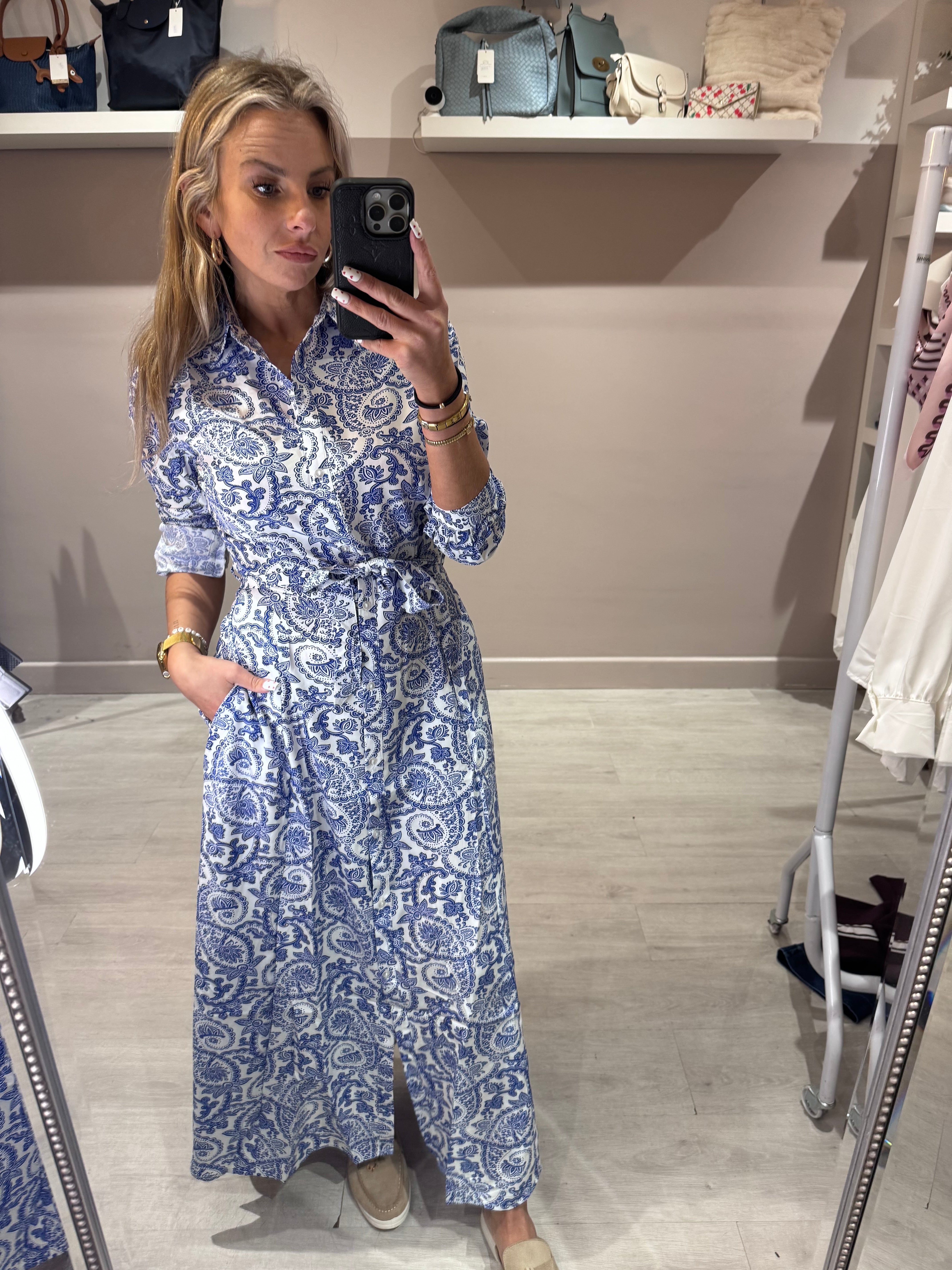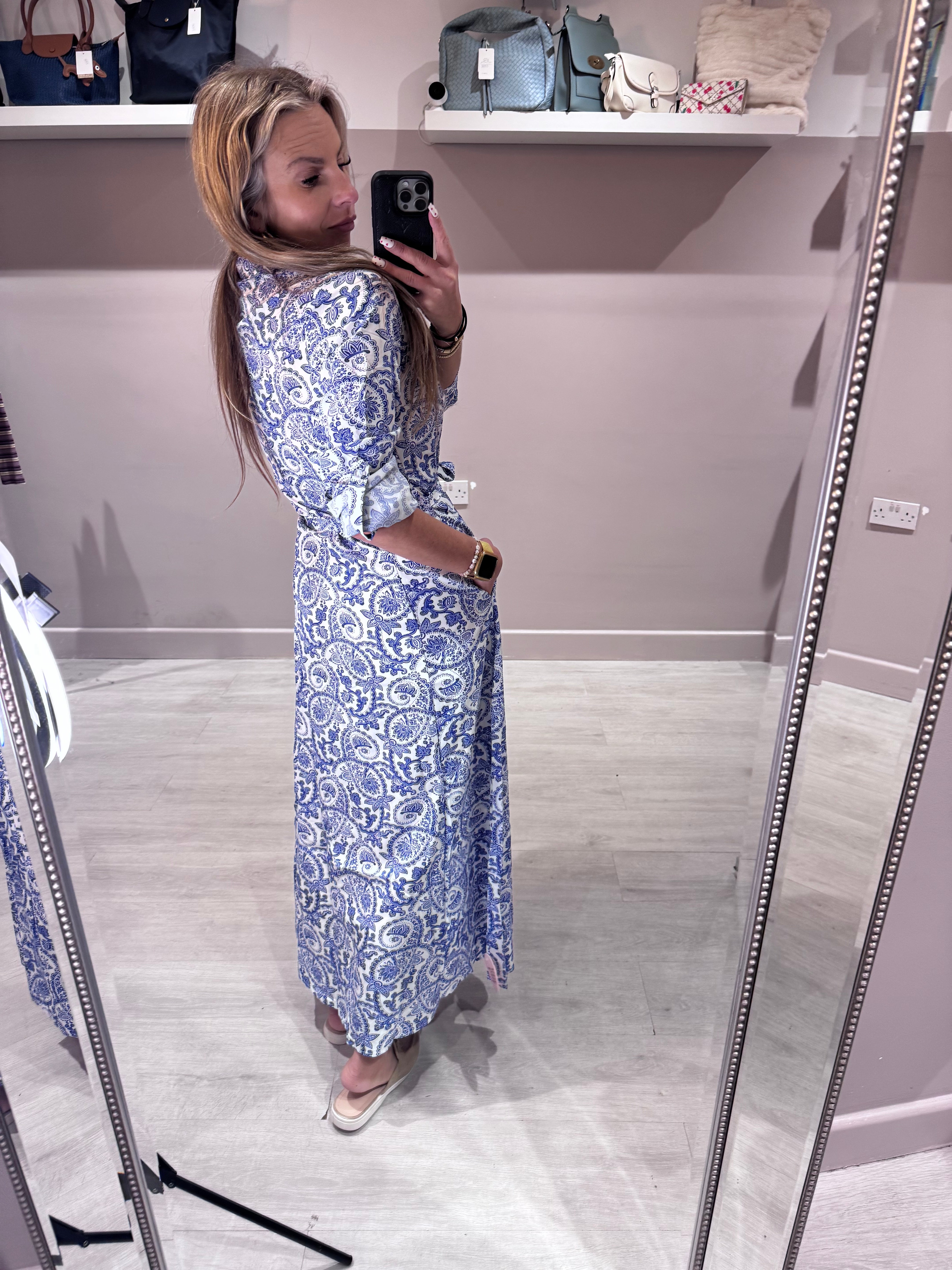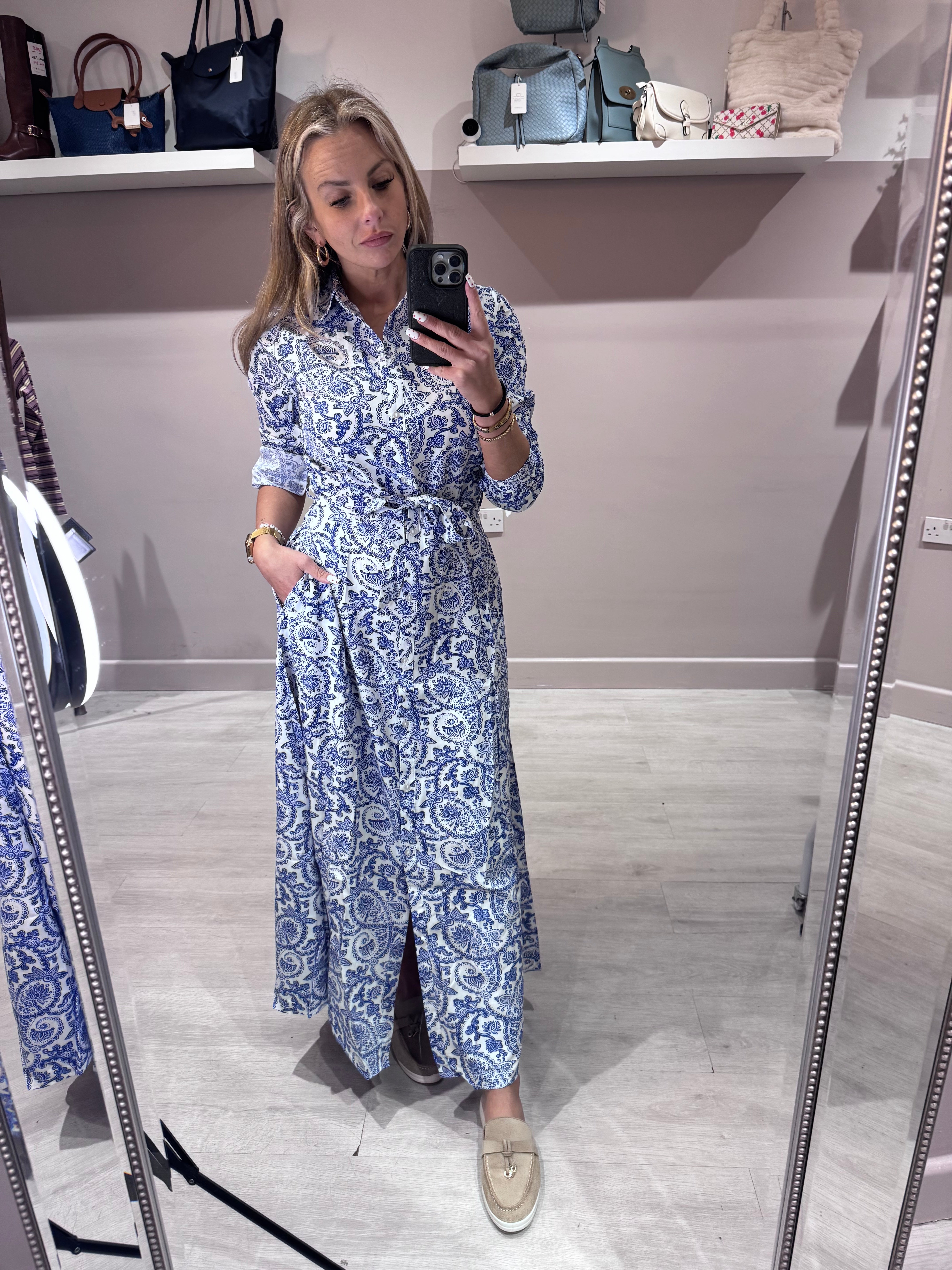 Porcelain Floral print midi length shirt dress