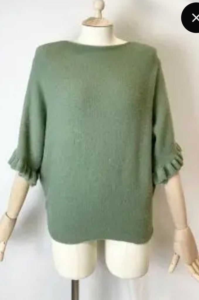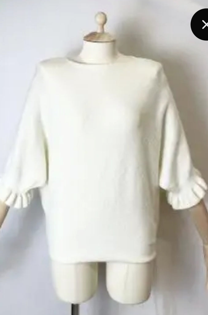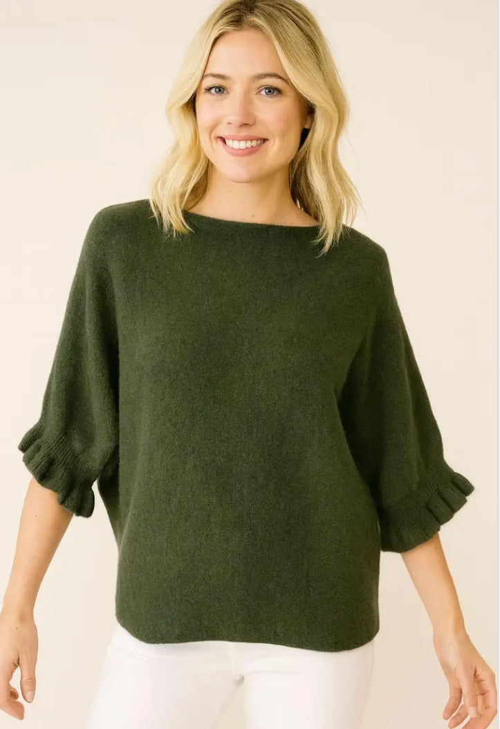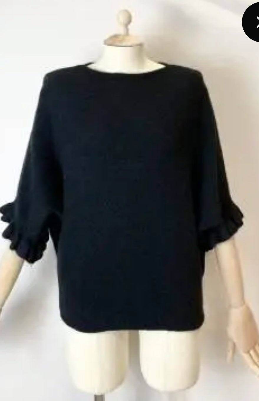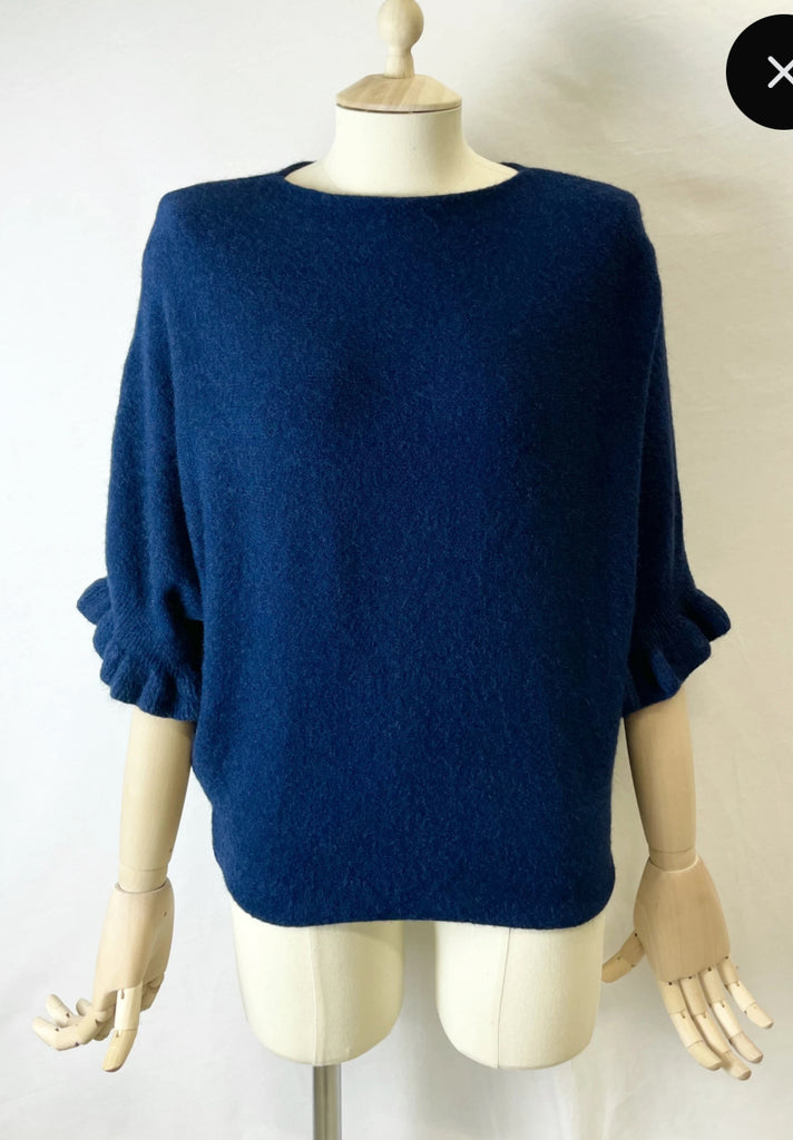 Ruffle sleeve batwing - Navy is backordered and will ship as soon as it is back in stock.