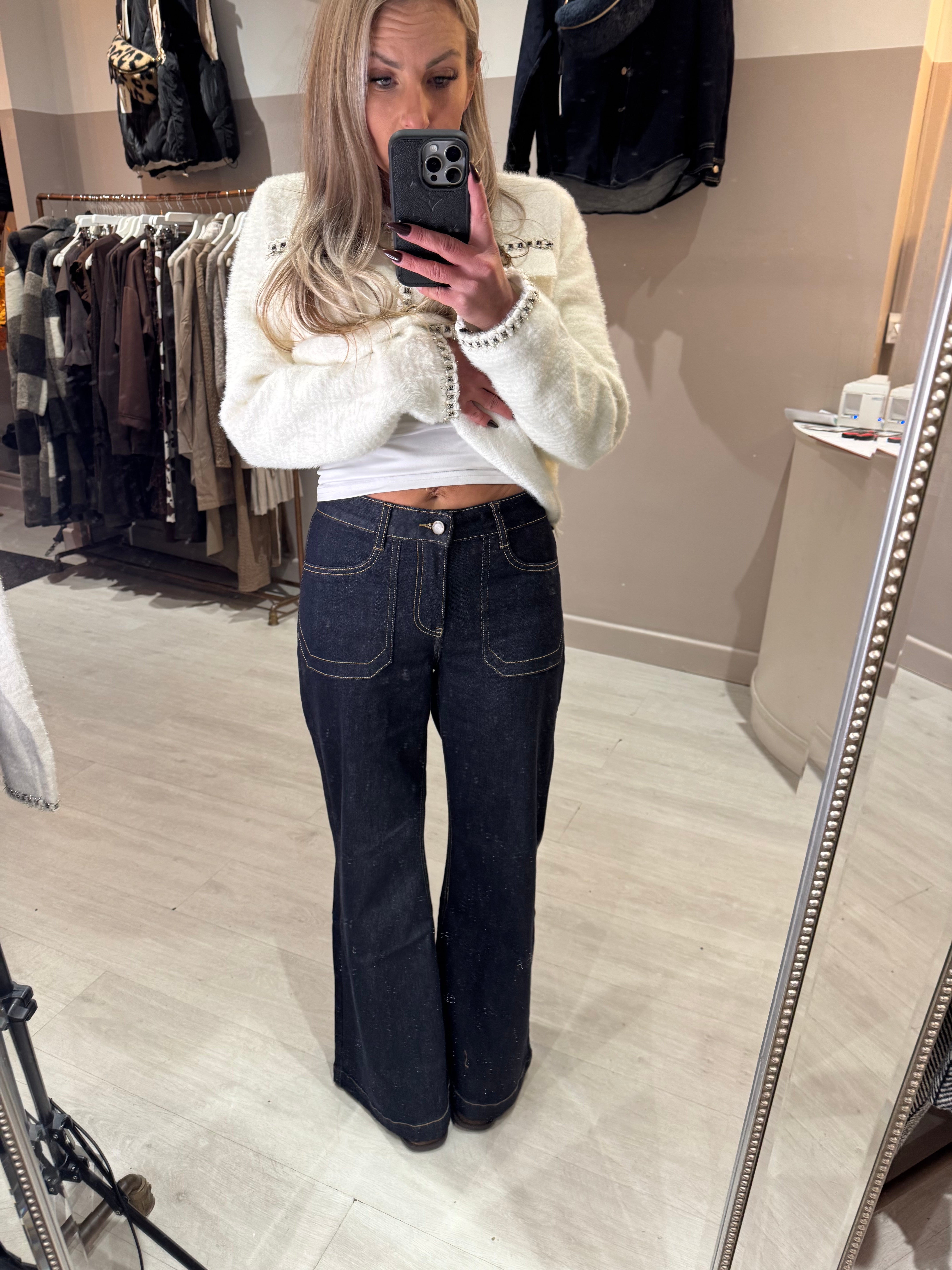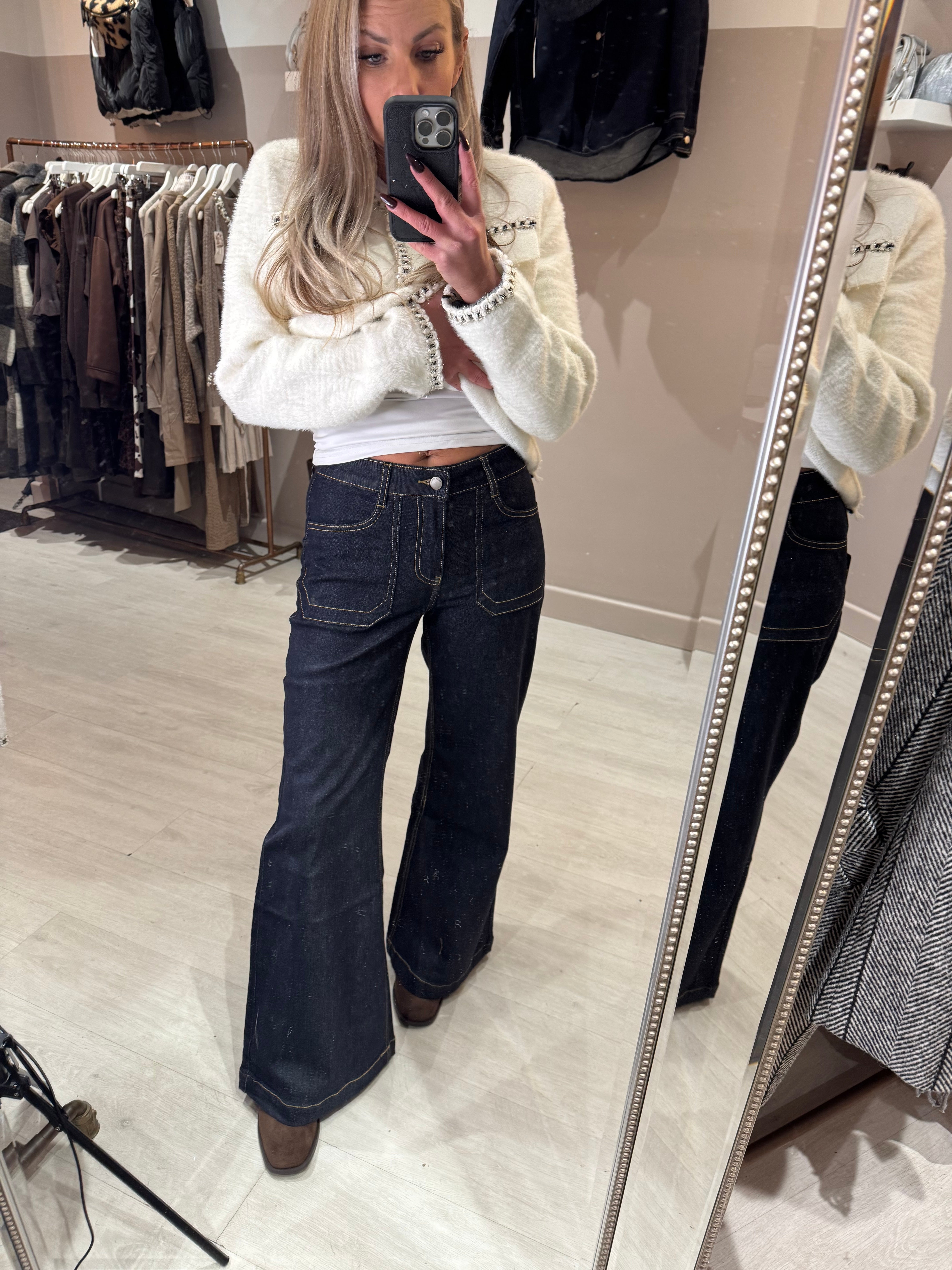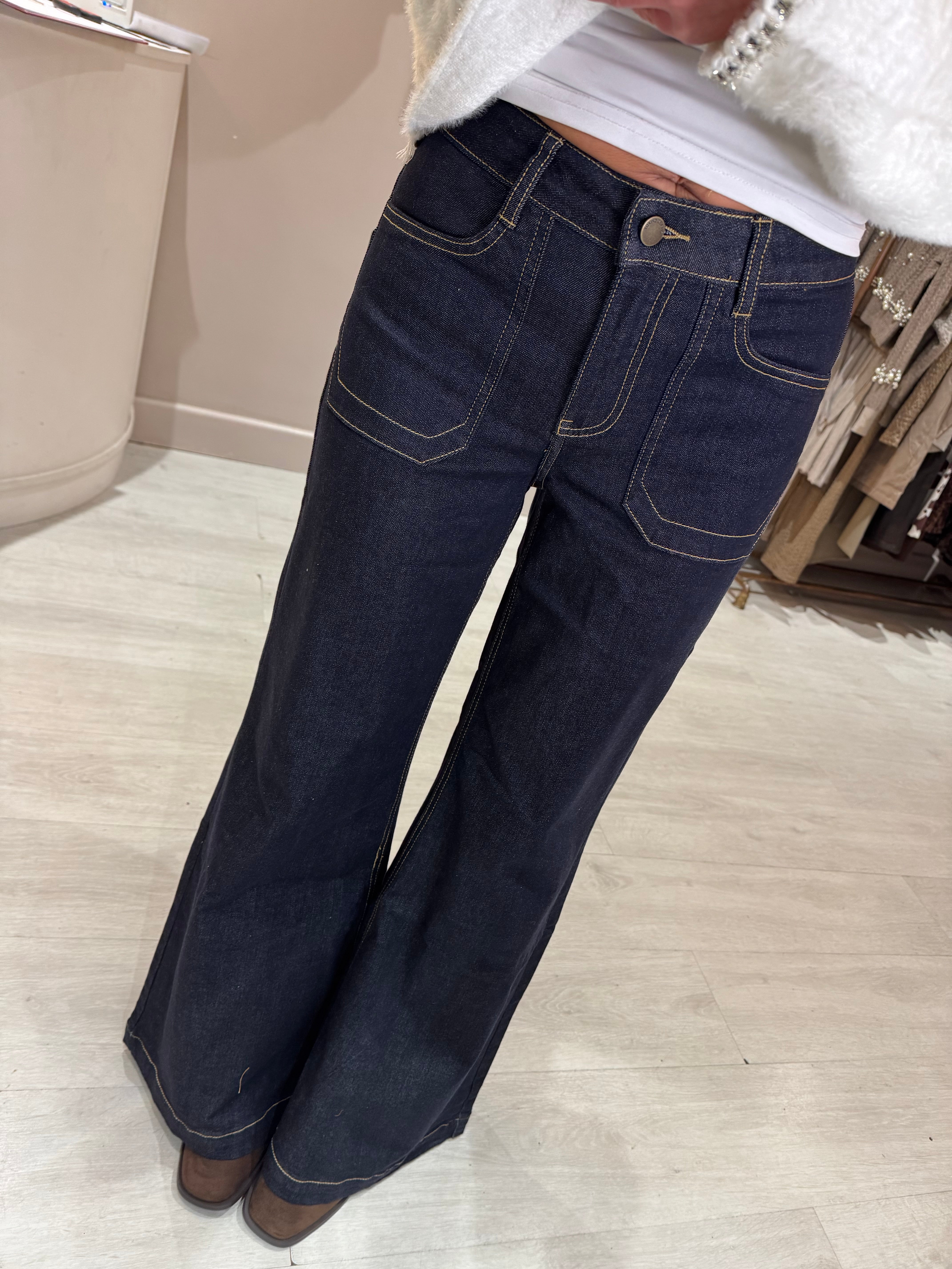 Navy Dark Denim Jeans - S is backordered and will ship as soon as it is back in stock.
